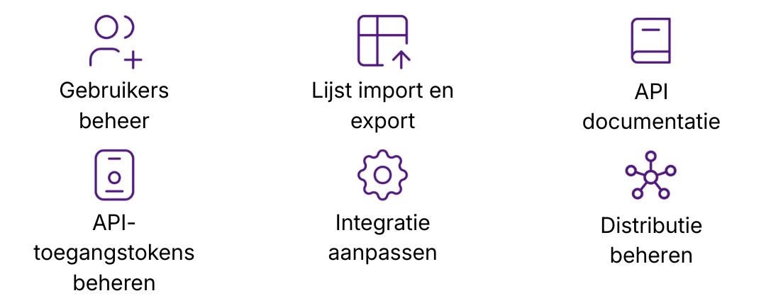 Met de bSafe API kunt u gebruikersbeheer automatiseren vanuit uw eigen systemen. Denk aan onboarding, mutaties en rapportages, terwijl u de beveiligde toegang en configuratie beheert via het portal.